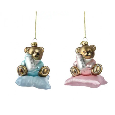 Oso de cristal con almohada y botella 2 modelos. Precio por modelo.surtidoLargo 7.4cm x Ancho 7.4cm x Alto 8.5cm
