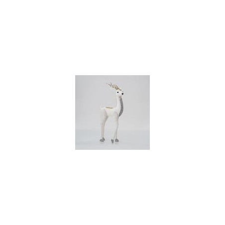 • CIERVO DE TERCIOPELO BLANCO CON PURPURINA DORADA 19x45x8cm