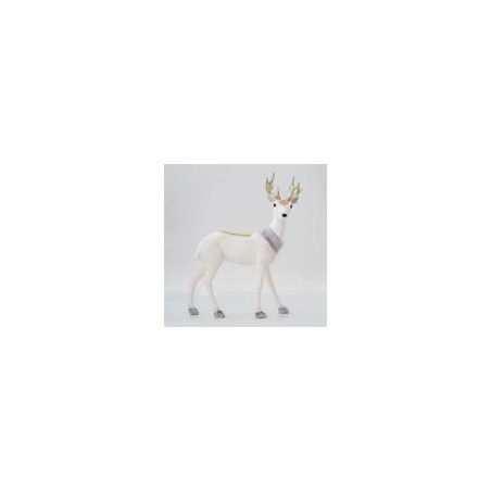 RENO DE TERCIOPELO BLANCO CON PURPURINA DORADA 32x52x14cm