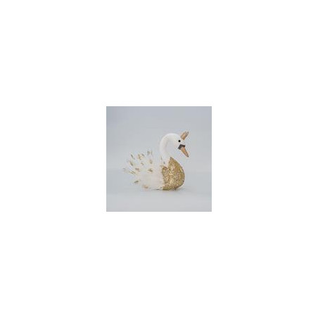 • CISNE DE TERCIOPELO BLANCO CON PURPURINA DORADA 27x22x28cm