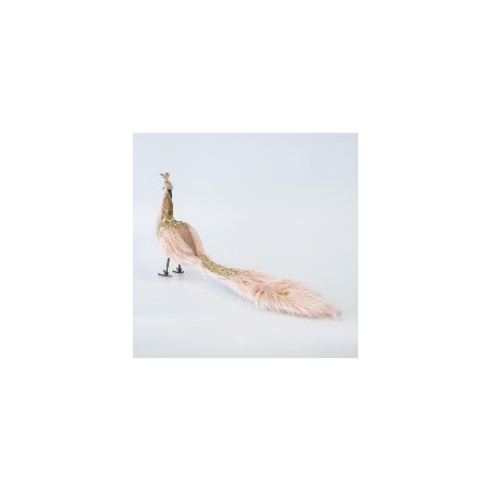 • PAVO REAL ATERCIOPELADO SALMÓN LIGERO. CON PLUMAS 30x17x60cm