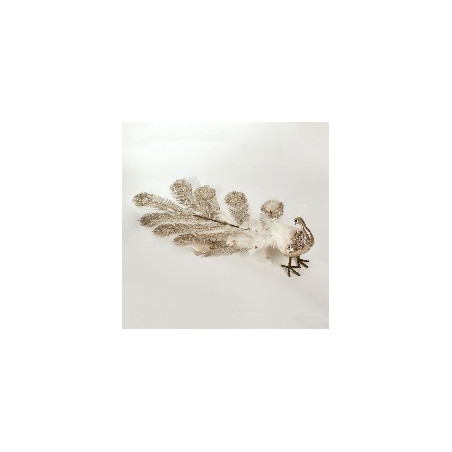 PAVO REAL CHAMPÁN CON PURPURINA Y PLUMAS 82cm