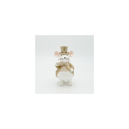 RATÓN DE POLIRESINA, CON SOMBRERO DORADO, 8x16,5cm