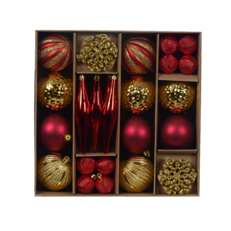 Set adornos . Color rojo y oro de plástico Diámetro 8cm
