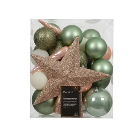 Set 33 bolas+estrella brillo+matesurtidoDiámetro 8cm