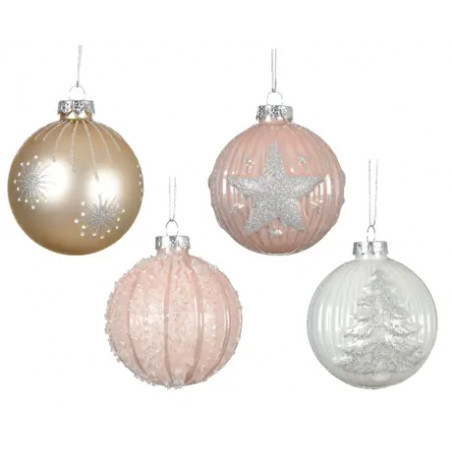 Bolas de vidrio esmaltado - purpurina mate 4 modelos. Precio por modelo.surtidoDiámetro 8cm