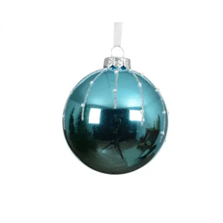 Adornos, vidrio, brillante, con líneas y puntos de purpurinaAzul folclóricoDiámetro 8cm