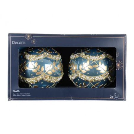 Bolas de vidrio transparente con hojas, abalorios y perlasazulDiámetro 10cm