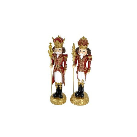 Cascanueces, 2 surtidos,poliresina roja/dorada, 12x13x49cm