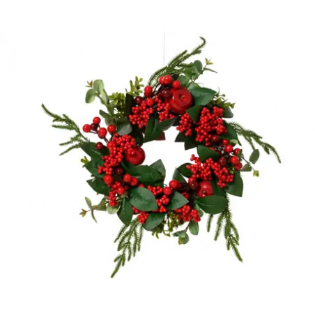 Corona de manzana roja/frutos rojos poliéster con espuma de frutos rojos y manzanasrojoDiámetro 45cm x Alto 12cm