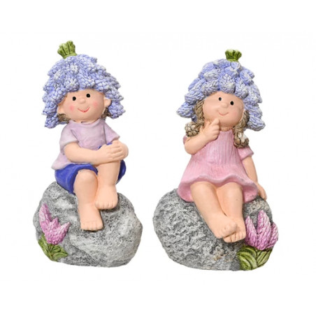 Figuras de poliresina niño-niña en roca 2 modelos