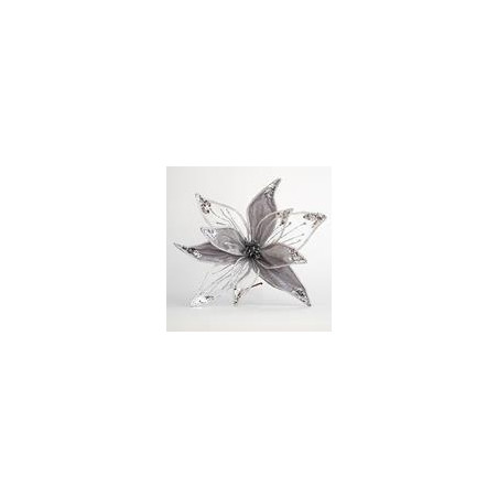 FLOR DE TERCIOPELO, GRIS Y TRANSPARENTE, 40cm