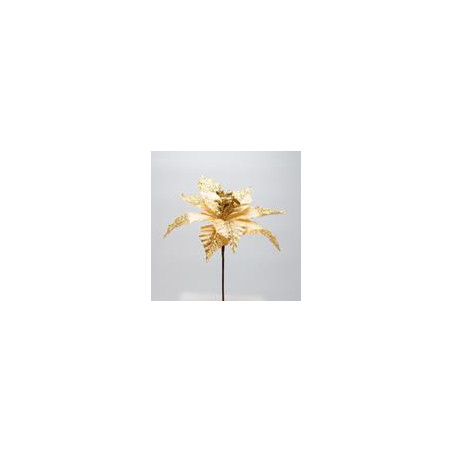 POINSETTIA, DORADA, CON PURPURINA BRILLANTE EN LA MITAD DE LA HOJA, 20x26cm
