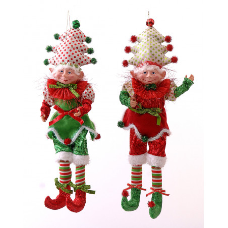 Elfo rojo y verde con gorro de árbol cabeza 56cm