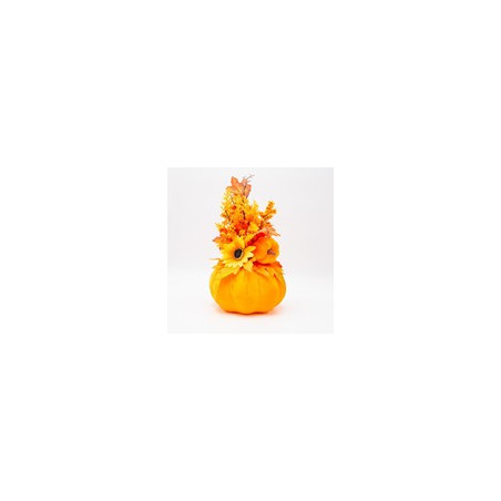 CALABAZA CON GIRASOL Y HOJA DE ARCE, 22cm