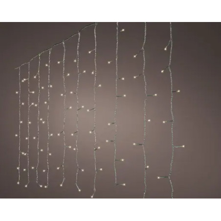 Luces de cortina LED de 12 funciones efecto cazador al aire libre. Transparente/Blanco cálido. Ancho 225cm x Alto 150cm