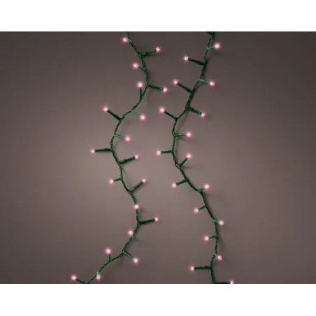 Luces compactas LED de 8 funciones con efecto centelleo al aire libre. verde/rosa. Largo 1600cm