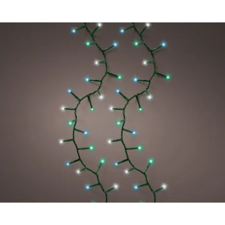 Luces compactas LED de 8 funciones con efecto centelleo al aire libre. Verde/Aguamarina/Blanco/Azul. Largo 1600cm