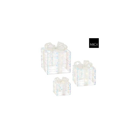 Regalo irisado LED BO 3 modelos. 15x15x18h cm 20x20x24h cm 25x25x30h cm