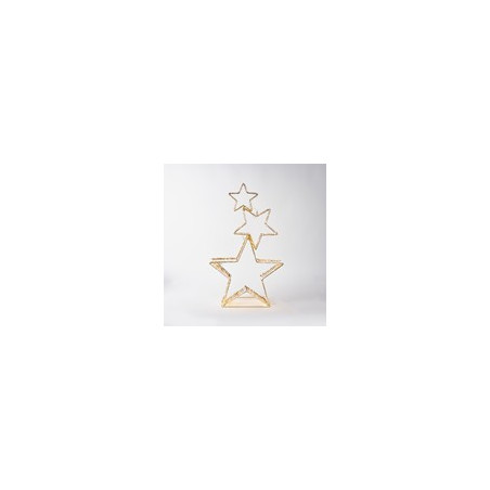 ESTRELLAS DORADAS ILUMINADAS 82cm, 350 MINI LED, ADAPTADOR 4,5V, TEMPORIZADOR, ALAMBRE DE COBRE PLATEADO, MARCO DE METAL DORADO, LED BLANCO CÁLIDO, CABLE CONDUCTOR 5m, IP44