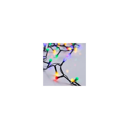 LÍNEA, 300 LED 3mm, CON BOLAS DE COLORES 0,9cm, ADAPTADOR 31V, 8 M/F Y MEMORIA, CABLE DE PVC VERDE, MULTI LED, POR 3cm, CABLE CONDUCTOR 3m, IP44