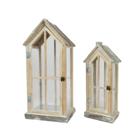 Farol de madera de abeto con techo de corteza, cruce de madera de abeto en frente fsc 100%natural/color(es)Largo 30.5cm x Ancho 20.5cm x Alto 67cm