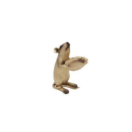 Rata Rudi con cuenco, poliresina dorada, 15,5 x 13,5 x 23 cm