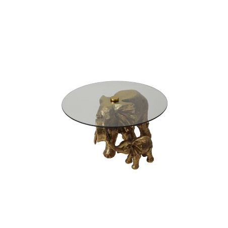 Mesa auxiliar Mali & Kisha,poliresina dorada/vidrio, 60x60x41 cm