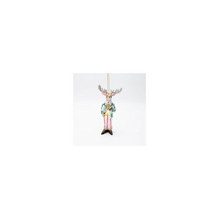 ADORNO DE VIDRIO, RENO, CON ROPA DE CARAMELO, 16cm