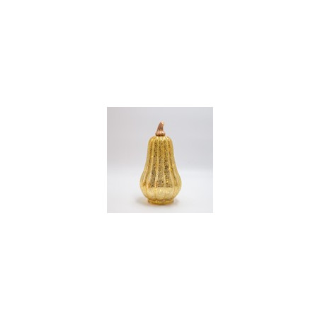CALABAZA DE CRISTAL DORADO ILUMINADO, CAJA DE BATERÍAS 3xAA, TEMPORIZADOR, 10 LED BLANCO CÁLIDO, 12,5x24cm, IP20