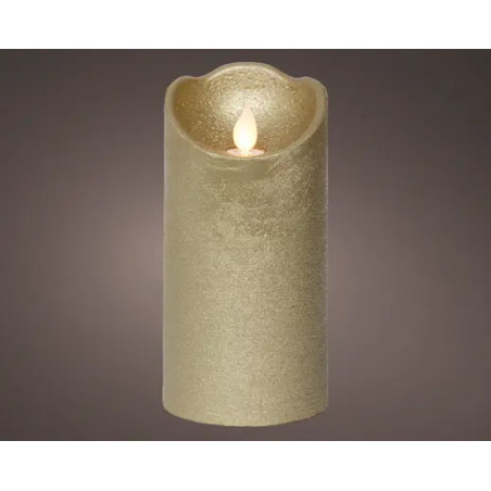 LED vela ondulante cera ola superior estable BO uso interior. Dorado/Blanco cálido. Diámetro 7.5cm x Alto 15cm
